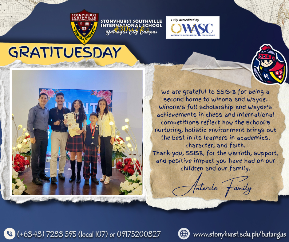 Thank you, SSISB, for the warmth, support, and positive impact you have had on our children and our family.” —Anterola Family