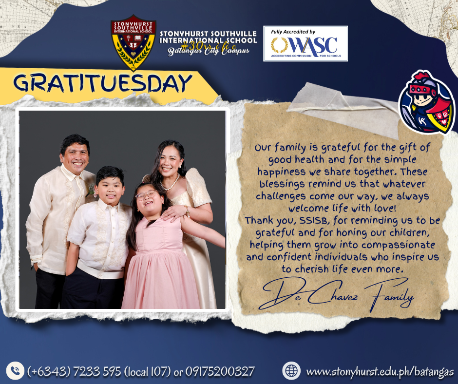 Thank you, SSIS, for reminding us to be grateful and for honing our children, helping them grow into compassionate and confident individuals who inspire us to cherish life even more.”