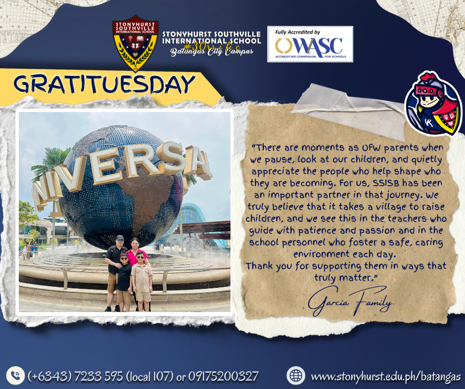 “There are moments as OFW parents when we pause, look at our children, and quietly appreciate the people who help shape who they are becoming. For us, SSIB has been an important partner in that journey. We truly believe that it takes a village to raise children, and we see this in the teachers who guide with patience and passion and in the school personnel who foster a safe, caring environment each day. Knowing that Daniel and Liam grow within such a supportive community means so much. Thank you for supporting them in ways that truly matter.” — Garcia Family