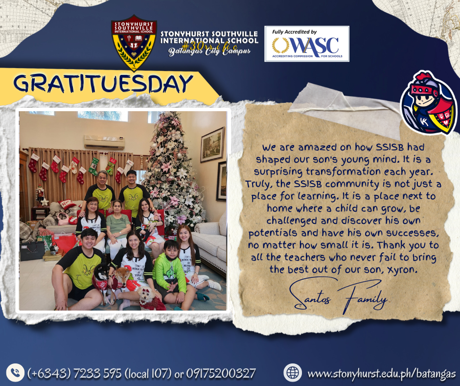 “Choosing SSISB for our youngest was quite a long shot. All our girls went to big schools for grade school. But we are amazed on how SSISB had shaped our son’s young mind. It is a surprising transformation each year. Truly, the SSISB community is not just a place for learning. It is a place next to home where a child can grow, be challenged and discover his own potentials and have his own successes, no matter how small it is. Thank you to all the teachers who never fail to bring the best out of our son, Xyron.”—Santos Family